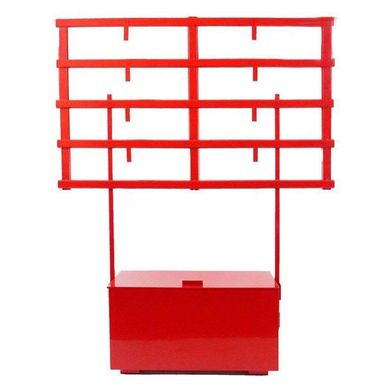 Стаціонарний стенд пожежний відритого типу складається з ящика для піску з відкидною кришкою і закріпленого над ящиком металевого каркаса пожежного щита розміром 1710х1230 мм.